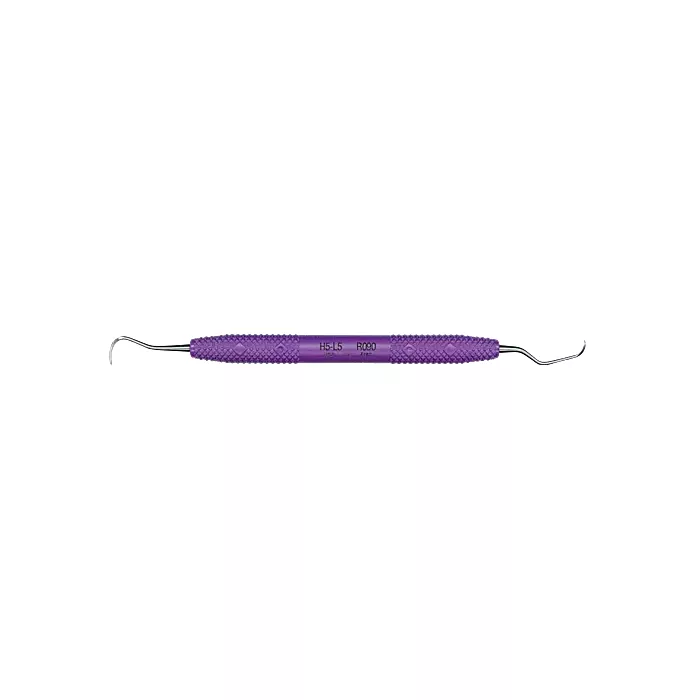 PDT's 2 in 1 anterior instrument with an H5 straight sickle scaler on one end for deposit removal and interproximal access and a universal curette Langer 5 end for fine finishing. PDT instruments are ideally weighted, featuring the most ergonomic handle with knurling to the instrument shank to provide increased comfort with less hand fatigue and pinch. PDT's focus on ergonomics greatly reduces the development of musculoskeletal disorders