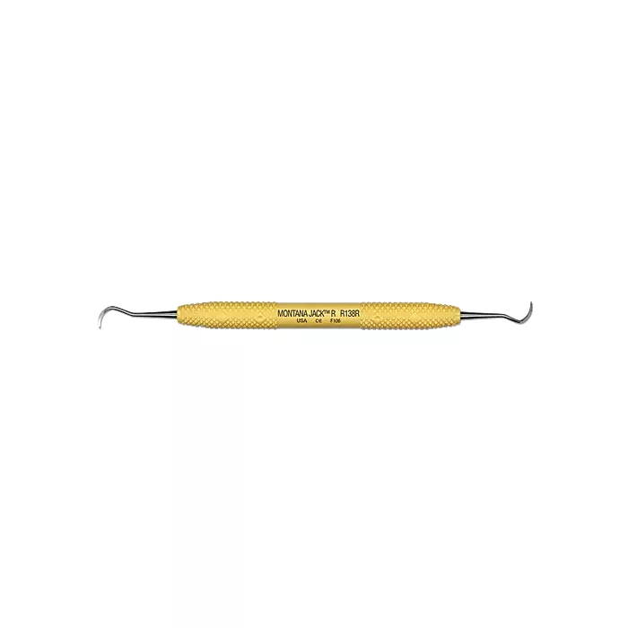 The Montana Jack rigid scaler features a heavier sickle blade and more rigid shank for more tenacious calculus and for cement removal while maintaining a perfect contra angle for the most universal adaptation of all sickle scalers. PDT instruments are ideally weighted, featuring the most ergonomic handle with knurling to the instrument shank to provide increased comfort with less hand fatigue and pinch. PDT's focus on ergonomics greatly reduces the development of musculoskeletal disorders.