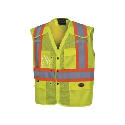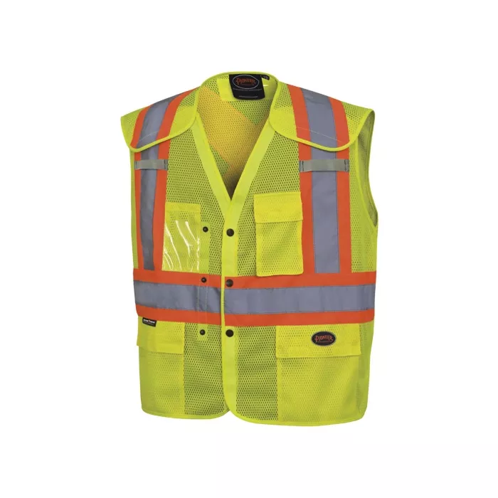 - 2 sangles à pince pour radio, 2 poches à rabat avec fermeture auto-agrippante, 1 poche pour téléphone portable sur la poitrine gauche, 3 emplacements pour stylos sur la poitrine droite, fente d’accès pour anneau en D