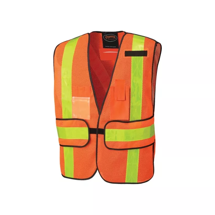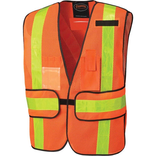 Pioneer Veste de sécurité polyvalente, Orange haute visibilité, Jaune et argent, Taille unique, Polyester, Aucune (V1030150-O/S)