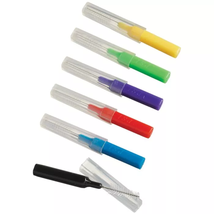 Plak Smacker’s travel inter-dental toothbrush is the perfect tool for on-the-go hygiene. The small, compact brush easily fits into any purse or pocket, and is perfect for dislodging trapped food and plaque from brackets and wires, or around teeth, bridges, crowns and implants. The clear cover conveniently converts into a handle, and the brushes are available in a variety of fun colors. Plus, they’re packaged in a quantity of 144, so you’ll always have plenty on hand for patients or for yourself!