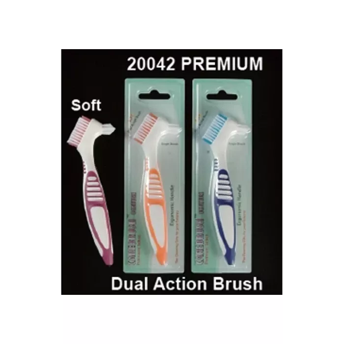 Keep your dentures clean with these premium denture brushes from Plasdent. With soft bristles and a comfortable grip, these brushes are perfect for daily use. Assorted colors make it easy to keep track of each brush. Pack of 12.