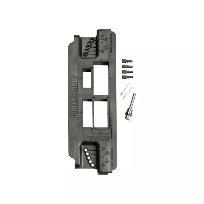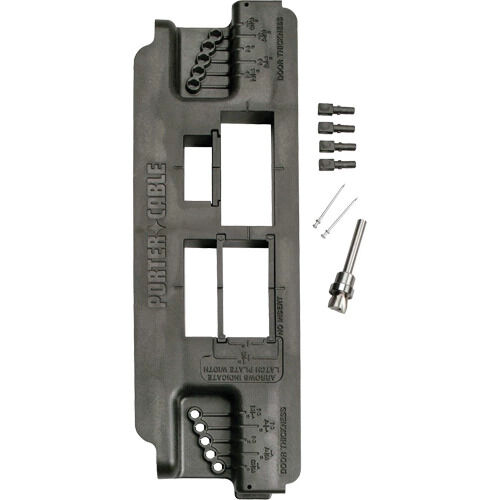 - Comprend : (1) gabarit de toupillage pour serrure et gâche avec 3 fiches, (4) goupilles de sûreté (incluant 2 goupilles de rechange), (2) clous à deux têtes superposées, (1) foret guidé en acier haute vitesse, (1) fiche d'instruction