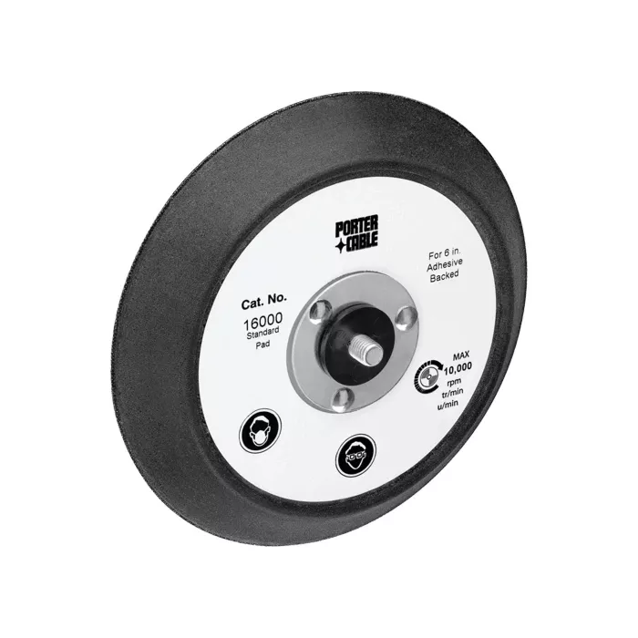 - Accommode facilement les disques abrasifs avec support adhésif de 6" et protège ceux-ci contre les dommages