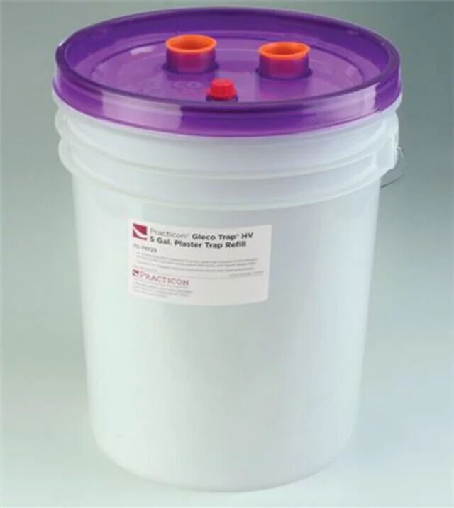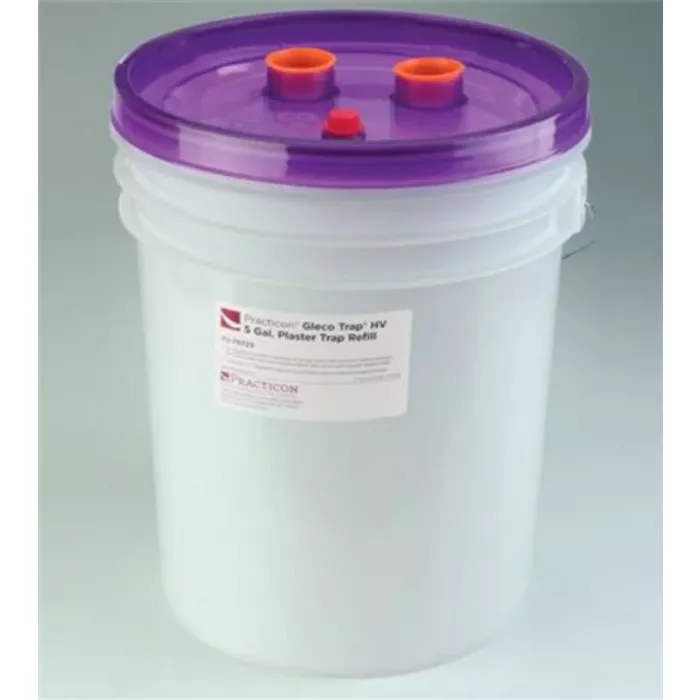 5.0-Gallon Gleco Trap HV RefillThe 5.0-Gallon Gleco Trap HV Refill features a newly engineered, air-tight lid with threaded inlet and outlet extensions that reserve an air pocket inside. When the trap is full, simply remove the air-release plug to drain inlet and outlet plumbing into the bucket before disconnecting. Patented design prevents the mess and contamination that occurs with removal of traditional plaster traps. 11"H.