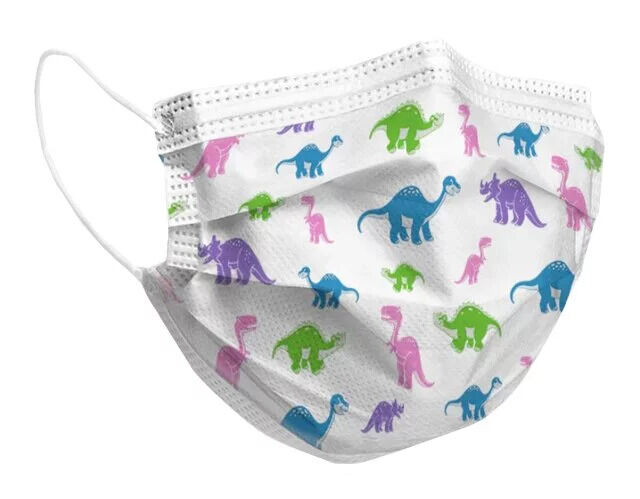 smaller size to ensure a proper fit on kids and the dinosaur pattern gives the mask a more friendly look to put young patients at ease.