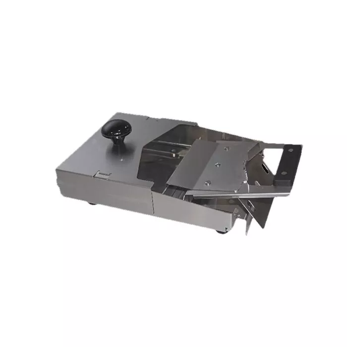 Solid stainless steel construction provides for long, reliable service. The sturdy frame sits flat on any counter for safe, stable operation or can be permanently attached to the work surface. A built-in table stop ensures the Bagel Saber tray neatly catches the sliced bagel halves. Precise, sharp, replaceable stainless steel blades ensure a clean cut with every stroke.