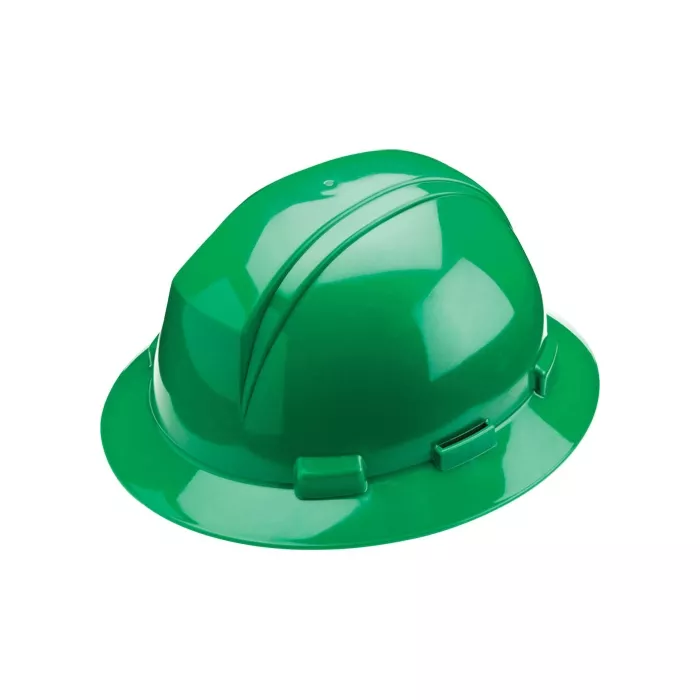 - Casque à bord complet avec fentes pour accessoires et coque en PEHD, harnais en nylon à 6 points de suspension avec dispositif d'ajustement à rochet « Sure-Lock » et 4 points de fixation pour mentonnière