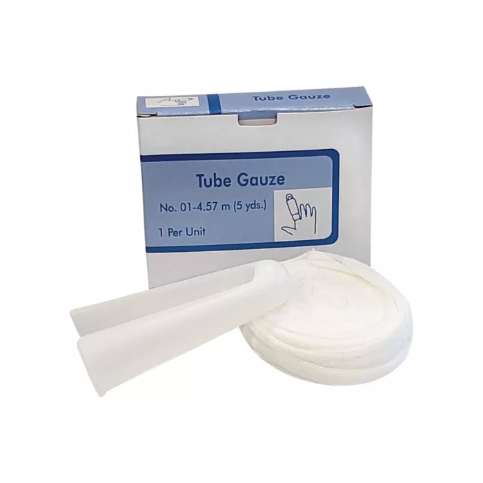 - Gaze en coton tubulaire à coutures dissimulées, utilisé pour fixer les bandages en place et pour appliquer une pression moyenne