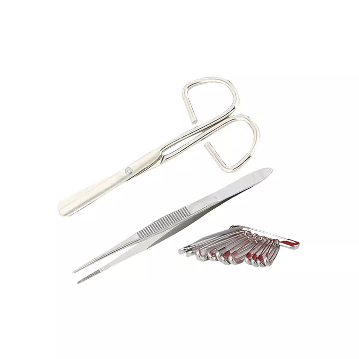 - Comprend: ciseaux, pinces, un jeu d'épingles de sécurité assorties