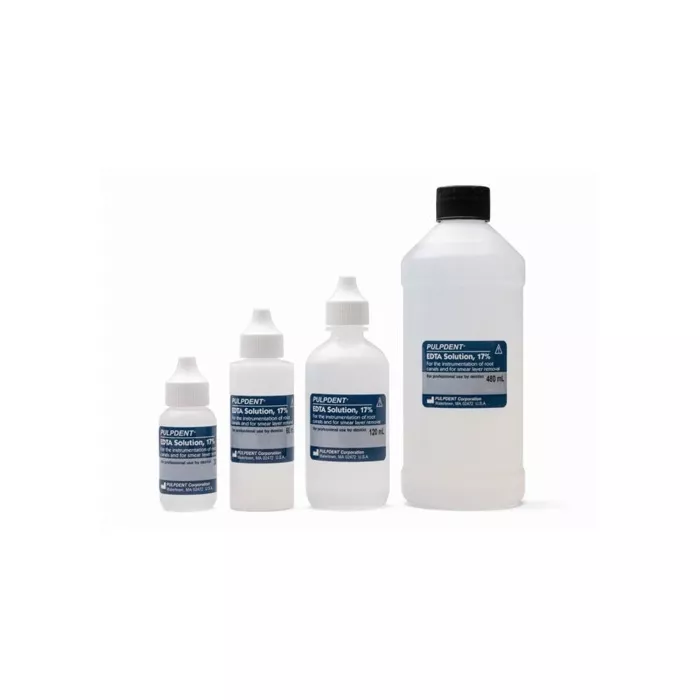 For the Instrumentation of Root Canals and Smear Layer Removal This 17% solution of EDTA, which has been buffered to a neutral pH, is an effective calcium binding or chelating agent used to faciliate instrumentation of root canals. EDTA decalcifies the dentin surface on the canal wall making it easier to enlarge and shape the canal with files and reamers.