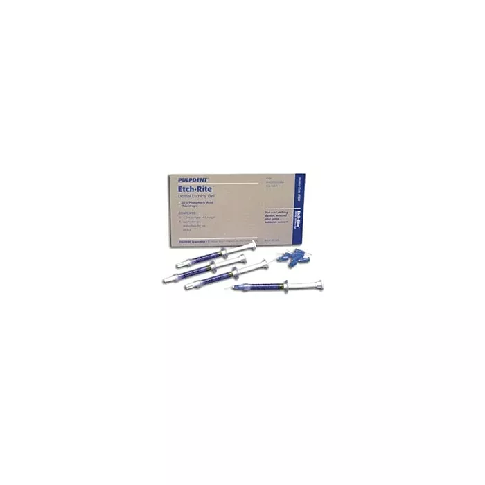 Le kit de gel de mordançage PulpDent Etch-Rite 38% est un gel de mordançage dentaire haute performance formulé avec 38% d'acide phosphorique. Ce kit comprend quatre seringues de 1,2 ml de gel de mordançage, offrant un contrôle précis et une facilité d'utilisation pour diverses procédures dentaires. La consistance du gel assure un mordançage efficace tout en empêchant le gel de couler, ce qui en fait un produit essentiel pour préparer les surfaces d'émail et de dentine pour les agents de collage, les composites, les scellants et autres matériaux de restauration.