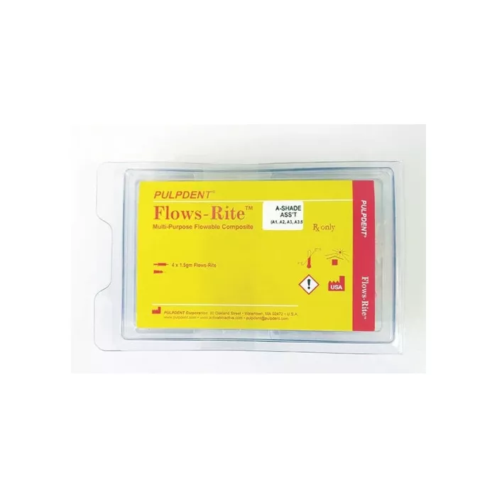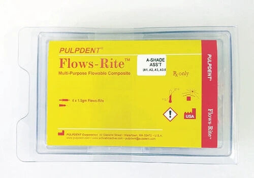 Le kit de recharge de ciment fluide Pulpdent Flows-Rite en teinte A1 est un composite fluide polyvalent et performant, conçu pour diverses procédures restauratrices dentaires. Ce ciment fluide offre d'excellentes caractéristiques de manipulation, une adhésion forte et des résultats esthétiques supérieurs, ce qui le rend idéal pour les applications de remplissage, de revêtement et de scellement. La teinte A1 assure un aspect naturel, se fondant parfaitement avec la structure dentaire environnante. Le kit de recharge comprend quatre seringues de 1,5 g et 20 embouts applicateurs, offrant commodité et efficacité pour les professionnels dentaires.