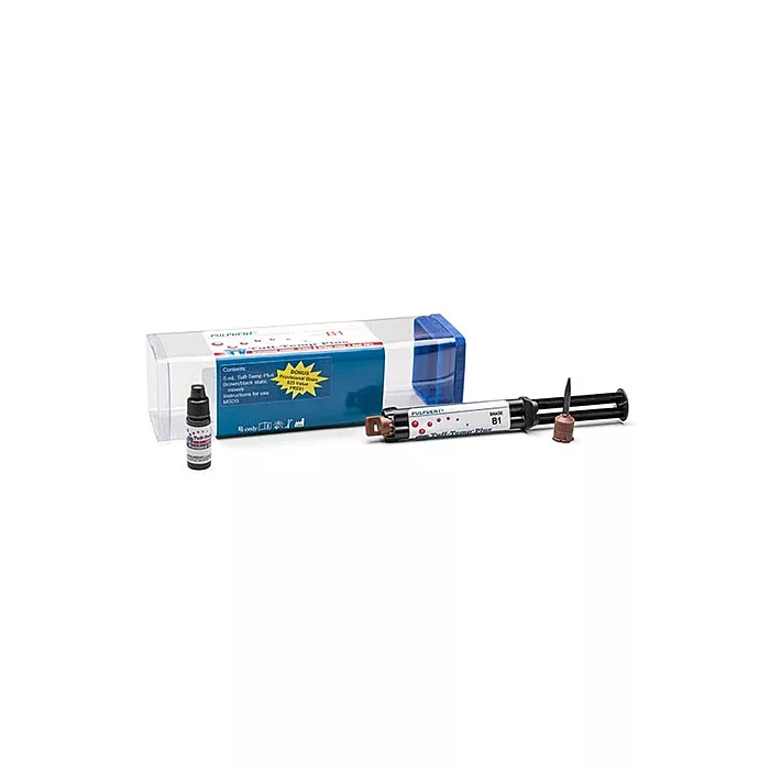 Provisional veneer, crown, & bridge resin. Strong, impact resistant rubberized-resin doesn’t shrink or distort and grips the tooth tightly. Virtually eliminates fractures and debonding. Grinds and powders during trimming without softening or distorting. Margins are perfect. The light cure option produces a full strength restoration on demand and is ideally suited for use with a clear vinyl polysiloxane template.