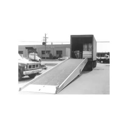 - Chargez ou déchargez des camions ou des wagons n'importe où. Augmentez la capacité de vos quais de chargements sans avoir à ajouter de nouveaux quais et éliminez la congestion au tour des quais. Idéal pour charger ou décharger du matériel à plusieurs endroits. Une manipulation par une seule personne équivaut à une réduction du coût de main-d'oeuvre. Choix de rampe de 30' ou de 36', rampe de 36' est munie d'un palier de mise à niveau de 6 pieds. Plancher de traction ouvert à grille dentée offert en acier de première qualité noir, en acier galvanisé ou en aluminium. Équipement régulier comprend: une pompe hydraulique manuelle pour élever le rebord de la rampe jusqu'à une hauteur entre 38" et 62". Un rebord pleine longueur de 16" de largeur. Deux chaînes d'ancrage de 8 pieds de longueur chacune. Une bordure de sûreté de 4 1/2" de hauteur. Roues pneumatiques, une barre d'attelage détachable. Le système hydraulique comprend un robinet de purge et évite les surcharges qui occasionneraient des dommages lorsque la charge transfert de la rampe.;