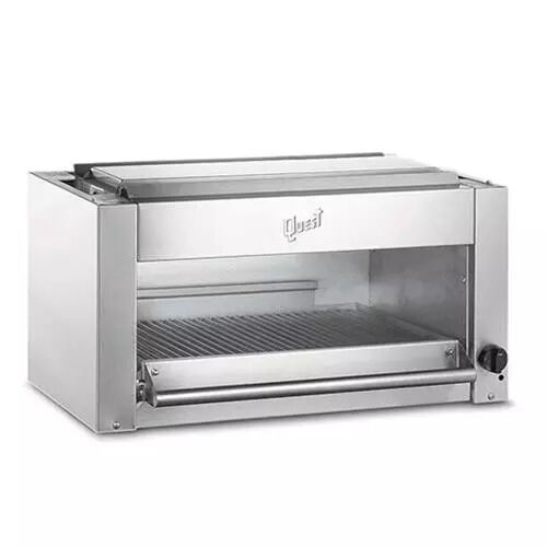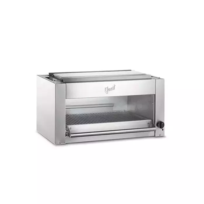 Versatile and durable. Efficient infrared gas burners provide 10 second warm up and gentle even heat. The most rapid heat up time available - cooking 10 seconds, full heat 2 minutes. Stainless steel sides, top and front. Unit can be range, wall or counter mounted and is easily serviced from the front. Heavy steel rod drawer grid section on easy slide rollers. Throttles to extremely low heat - great for cheese melting, onion soup, crepes, etc. Powerful heat on high setting - ideal for browning or cooking. Dimensions: 24" W x15" D x 14-3/4" H 28000 BTU Natural gas Controls on right side