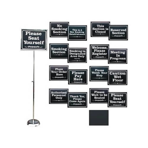 - Eight (9) self-inserting, two-sided signs: No Smoking Section, This Is A Non Smoking Environment, Smoking Section, Smoking In Designated Area Only, Please Place Your Order Here, Please Pay Here, Authorized Personal Only, Thank-You Come Again, This Section Is Closed, Reserved Section, Welcome Please Register, Meeting In Progress, Please Watch Your Step, Caution Wet Floor, Please Wait To Be Seated, Please Seat Your Self, and one blank card