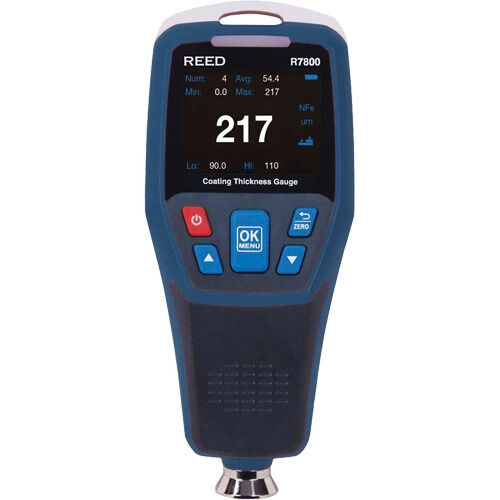 - Comprend: (1) jauge d'épaisseur de revêtement, (1) substrat ferreux, (1) substrat non-ferreux, (5) films de référence, (1) câble USB, (1) dragonne, (1) couvercle pour le capteur, (2) piles AA, (1) étui de transport rigide