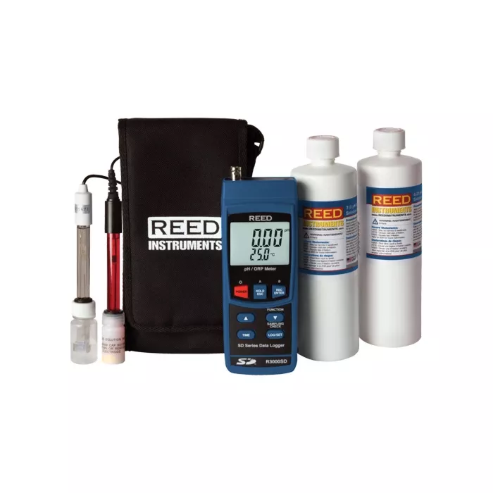 - Comprend : compteur pH/POR avec enregistrement de données, électrode de mesure du pH, électrode de mesure du POR, solution tampon de pH 4, solution tampon de pH 7
