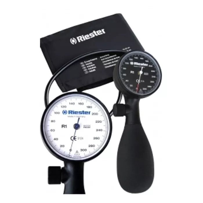 considerable  logistic costs.Focus Green Silver 2008 Design Award.White with blue pointer or black with red fluorescent pointer.Valve base and air duct with metal precision valve.Two-component ABS casing.Metal threaded tube connection at the top of the casing for fast cuff exchange and ergonomical operation.Maximum error tolerance of +/- 3 mm Hg.Extensive selection of various cuff sizes.Includes latex-free, adult sized cuff and vinyl zippered bag.Weight: 6.1 ounces