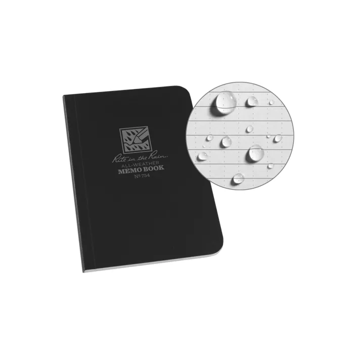 Rite In The Rain Livre mémo, 3-1/2" X 5", Couverture souple, Noir, 112 Nombre de pages (754)