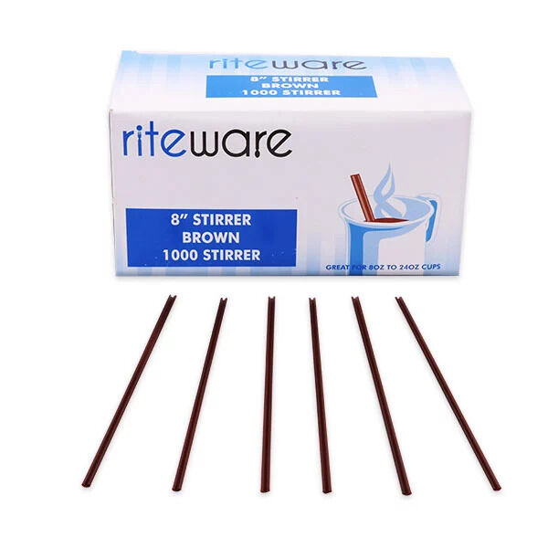 Elevate your beverage service and presentation with the Riteware 8" Beverage Stir Stick in Brown. Whether it's stirring your morning coffee, mixing a refreshing iced tea, or adding a final flourish to your cocktail creation, these stir sticks are the perfect addition to your drink-preparation routine. Get the convenience and style you deserve with this 1000/Box offering. Upgrade your beverage game with Riteware today!