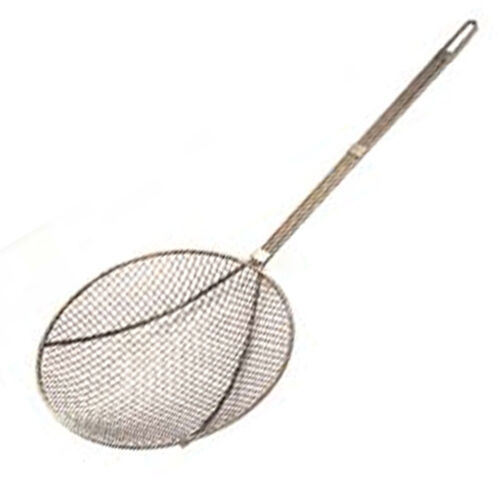 Round, coarse mesh. Nickel plated steel wire. 9" x 23".