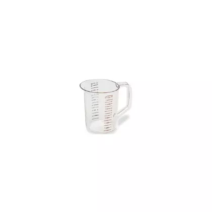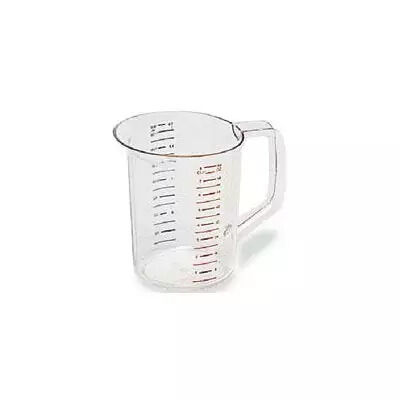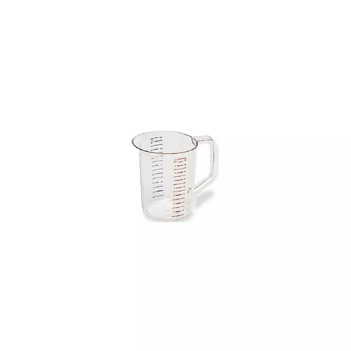 Clear measuring cups for fast, easy identification of contents. Clear, break-resistant polycarbonate. Temperature range: –40°F/–40°C to 212°F/100°C. Long-lasting measurement markings in red/blue.