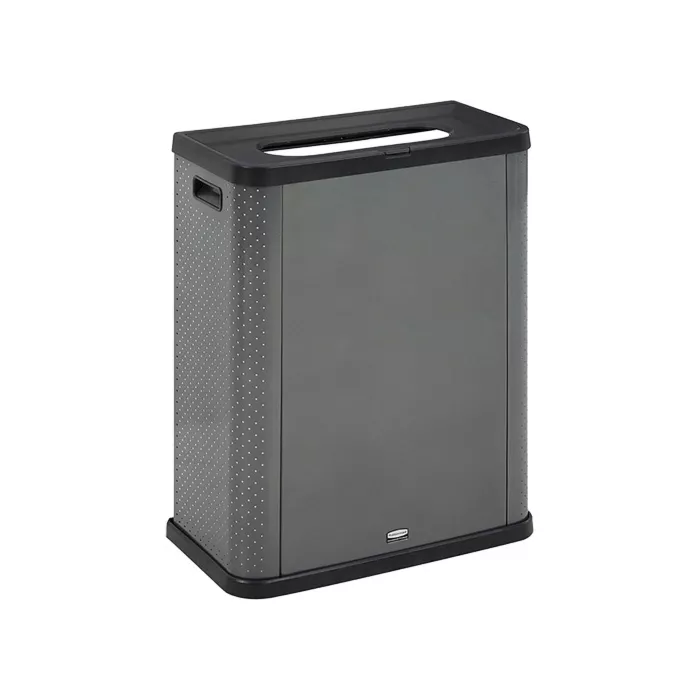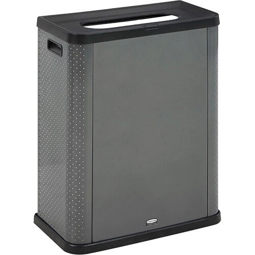 - Le conteneur à déchets en métal à trois côtés transforme les poubelles Slim Jim(MD) en accessoires décoratifs profilés ou il peut être utilisé comme conteneur autonome avec des bandes de retenue pour fixer les doublures intérieures en place