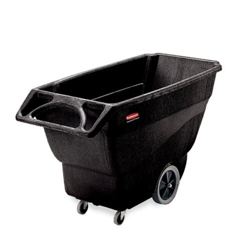 2100 lbs capacity and 0.75 cubic yards of volume. Fits through standard commercial elevator doors. Non-marking casters reduce touch up cleaning. Constant force design allows for controlled one-person dumping. Unique 'steering wheel' handle provides excellent maneuvering capabilities.