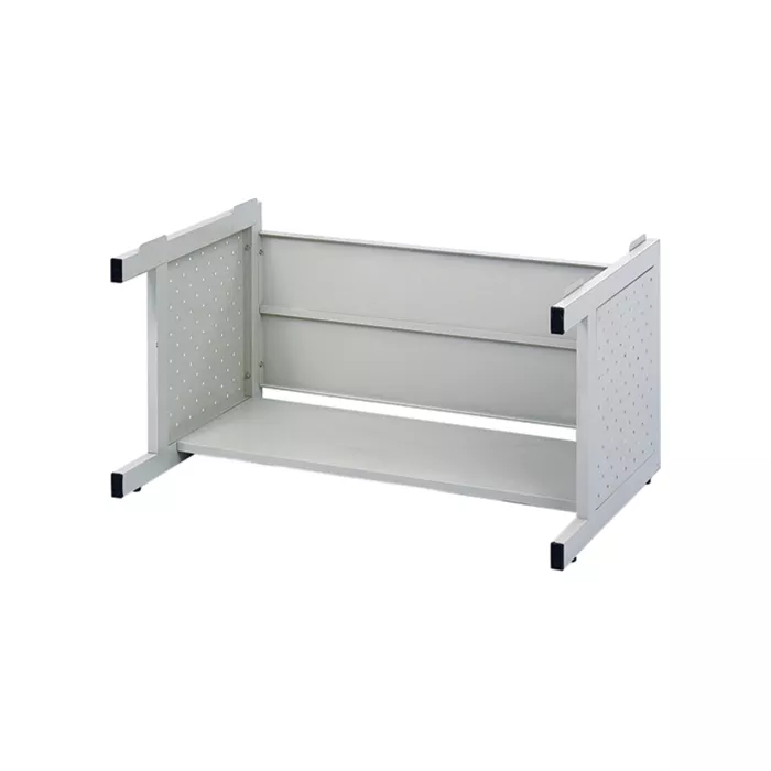 - Partie arrière et côtés fermés et partie avant ouverte avec tablette de rangement supplémentaire