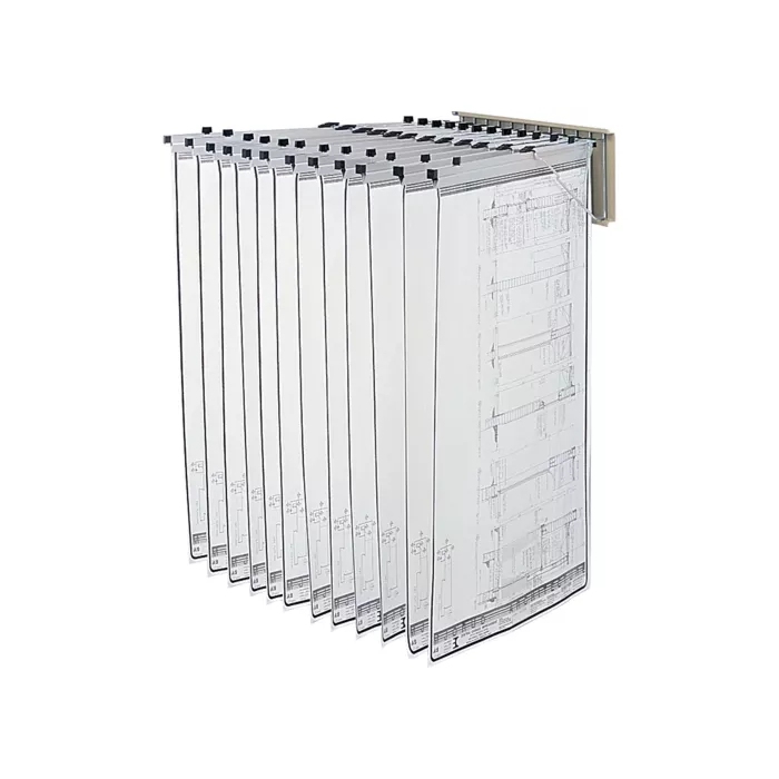 - 12 pinces suspendues pouvant contenir des feuilles de toutes largeurs dépendant de la hauteur de fixation