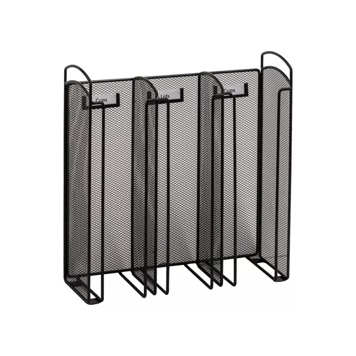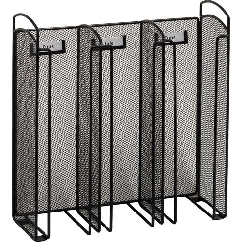 - Muni de trois compartiments dédiés au rangement des verres à café, des couvercles et des verres à eau