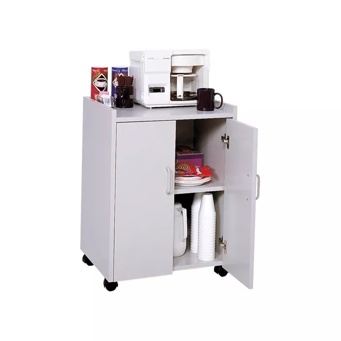 - Modèle en stratifié de bois à deux portes avec tablette fixe à l'intérieur, grand plan de travail résistant à la chaleur avec rebord surélevé de 1 1/4" qui prévient les dégâts