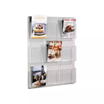 - Les présentoirs à installer au mur sont fabriqués d'acrylique transparent incassable formés à chaud et ne demandent aucun assemblage