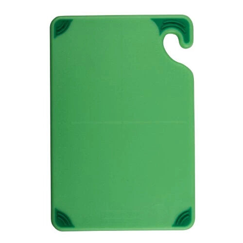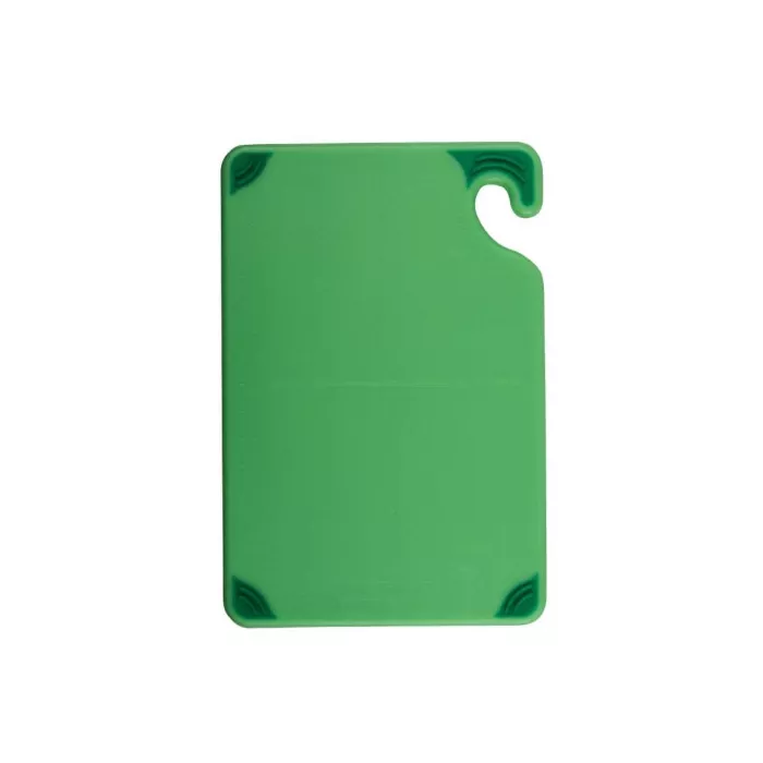 Patented food safety hook allows for sanitary transport and storage. Integrated anti-slip grip corners hold the board securely in place, eliminating the need for the use of an unsanitary “wet towel". HACCP colours, designed to meet health codes and minimize cross contamination.