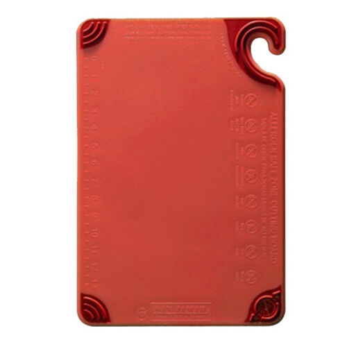Patented food safety hook allows for sanitary transport and storage. Integrated anti-slip grip corners hold the board securely in place, eliminating the need for the use of an unsanitary “wet towel". HACCP colours, designed to meet health codes and minimize cross contamination.