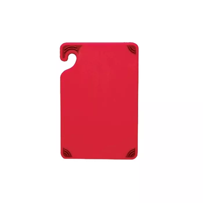 Patented food safety hook allows for sanitary transport and storage. Integrated anti-slip grip corners hold the board securely in place, eliminating the need for the use of an unsanitary “wet towel". HACCP colours, designed to meet health codes and minimize cross contamination.