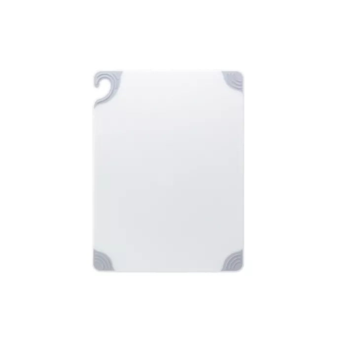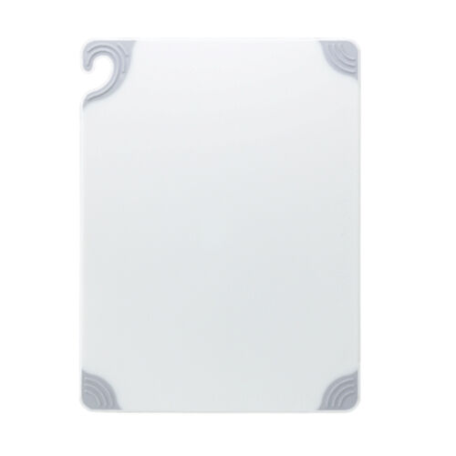 Patented food safety hook allows for sanitary transport and storage. Integrated anti-slip grip corners hold the board securely in place, eliminating the need for the use of an unsanitary “wet towel". HACCP colours, designed to meet health codes and minimize cross contamination.
