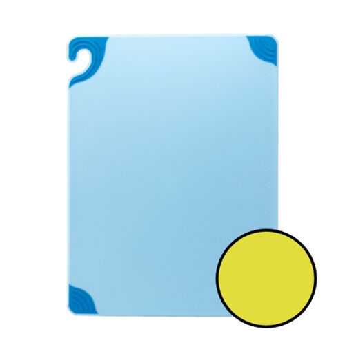 Patented food safety hook allows for sanitary transport and storage. Integrated anti-slip grip corners hold the board securely in place, eliminating the need for the use of an unsanitary “wet towel". HACCP colours, designed to meet health codes and minimize cross contamination.