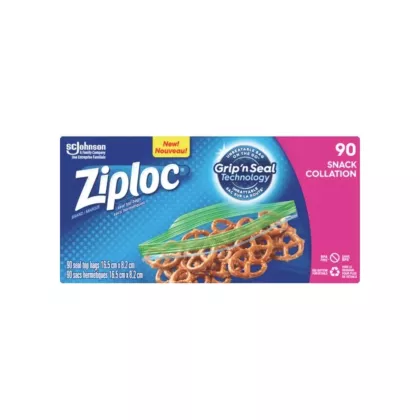 SC Johnson Sacs à collation Ziploc(MD), 6-1/2" X 3-1/4", Fermeture à pression, 90 Qté/bte (1.00671E+13)