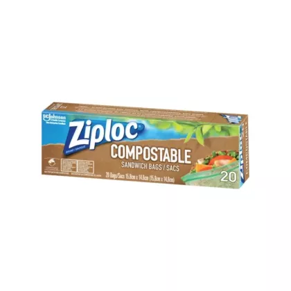 SC Johnson Sacs à sandwich compostables Ziploc(MD), 6-1/2" X 5-7/8", Fermeture à glissière, 20 Qté/bte (1.00671E+13)