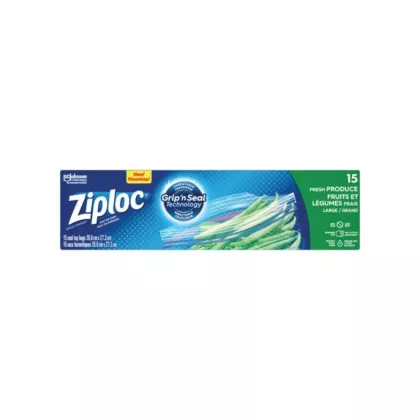 SC Johnson Sacs pour fruits et légumes Ziploc(MD), 10-1/2" X 10-1/2", Fermeture à pression, 15 Qté/bte (1.00671E+13)