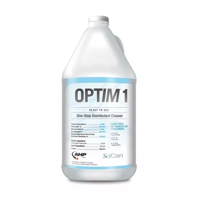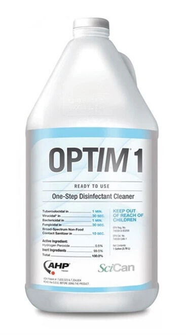 With a 1-minute broad-spectrum contact time OPTIM 1 is one of the fastest and most effective cleaner & intermediate level disinfectants. OPTIM 1 is safe; it does not require any GHS hazard pictograms, signal words or statements. OPTIM 1 gives you confidence that you are compliant and protecting your patients, staff, equipment, and the environment; the perfect balance. OPTIM has demonstrated effectiveness against viruses similar to Coronavirus Disease 2019 (COVID-19) on hard non-porous surfaces and non-invasive medical devices. This product can therefore be used against COVID-19 when used in accordance with the directions for use against Poliovirus on hard, non-porous surfaces, and non-invasive medical devices. - 1 minute tuberculocidal, bactericidal, virucidal, fungicidal contact time - Environmentally friendly; Hydrogen Peroxide, breaks down into water and oxygen - Non-irritating to skin, eyes and respiratory tract - Non-toxic to reproduction, child development and fertility - No VOCs (volatile organic compounds) - Designed to be compatible with a wide range of materials Active ingredient: 0.5% Hydrogen peroxide SciCan Optim 1 Disinfectant Sell Sheet SciCan Optim1 MSDS