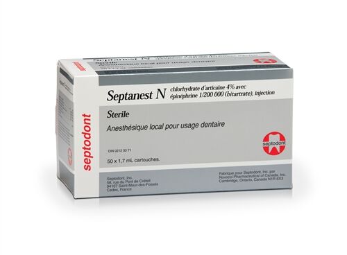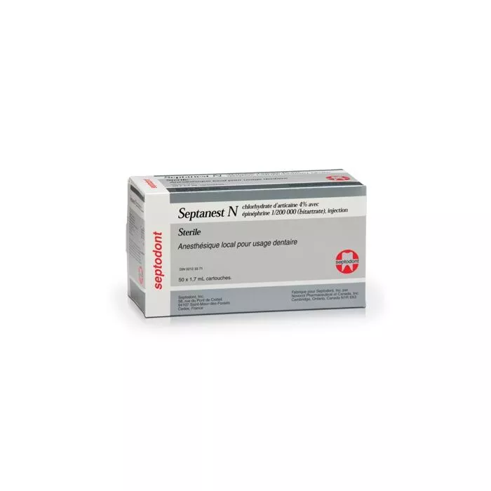 Septodont Septanest N Silver Articaine HCI 4% with 1:200,000 epinephrine injection 50/box