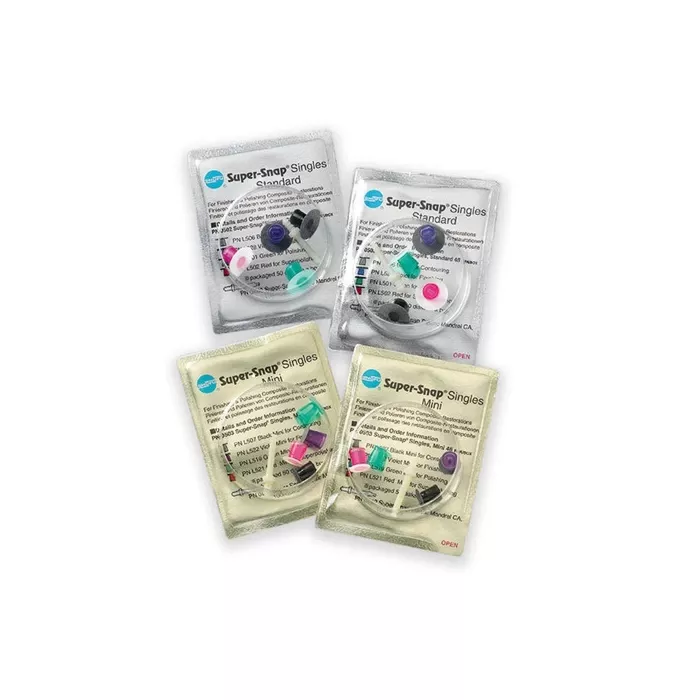 Super-Snap is designed for easy, fast and safe contouring, finishing and polishing of all microfilled and hybrid composites.Super-Snap Singles are disposable single patient use packages.