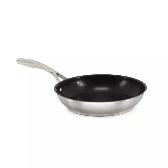 Professional 3 ply stainless steel cookware with an aluminum core for excellent heat conductivity. Designed with a heavy duty forged handle and durable stainless steel rivets to withstand the toughest kitchens.