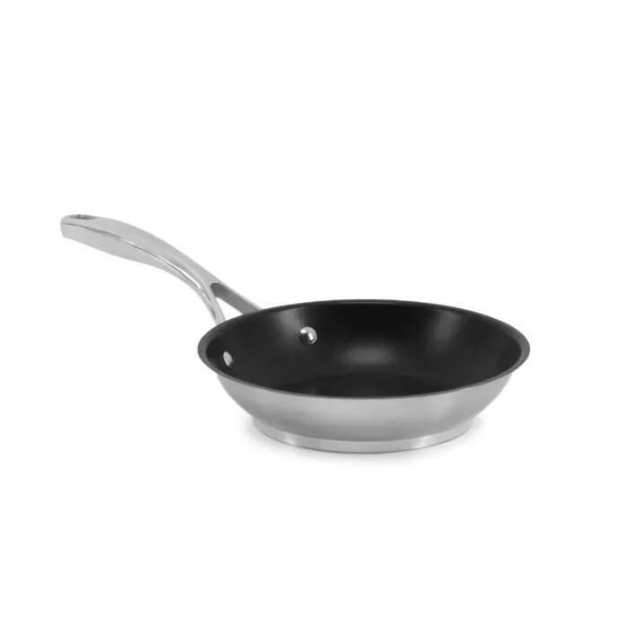 Professional 3 ply stainless steel cookware with an aluminum core for excellent heat conductivity. Designed with a heavy duty forged handle and durable stainless steel rivets to withstand the toughest kitchens.
