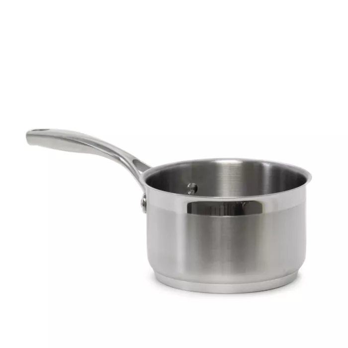Professional 3 ply stainless steel cookware with an aluminum core for excellent heat conductivity. Designed with a heavy duty forged handle and durable stainless steel rivets to withstand the toughest kitchens.