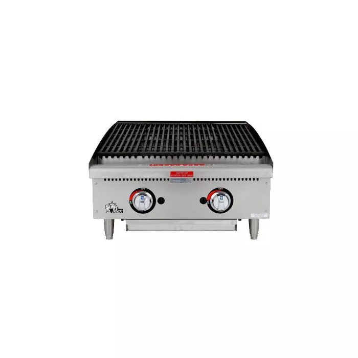 Star-Max radiant and lava rock charbroilers are designed to provide excellent heating and control when preparing a wide variety of products. The units are designed with durability and flexibility in mind with cast burners and a control knob for each twelve [12] inch (304mm) section. The grates have been designed to hold a high capacity of product for maximum efficiency under demanding cooking situations.